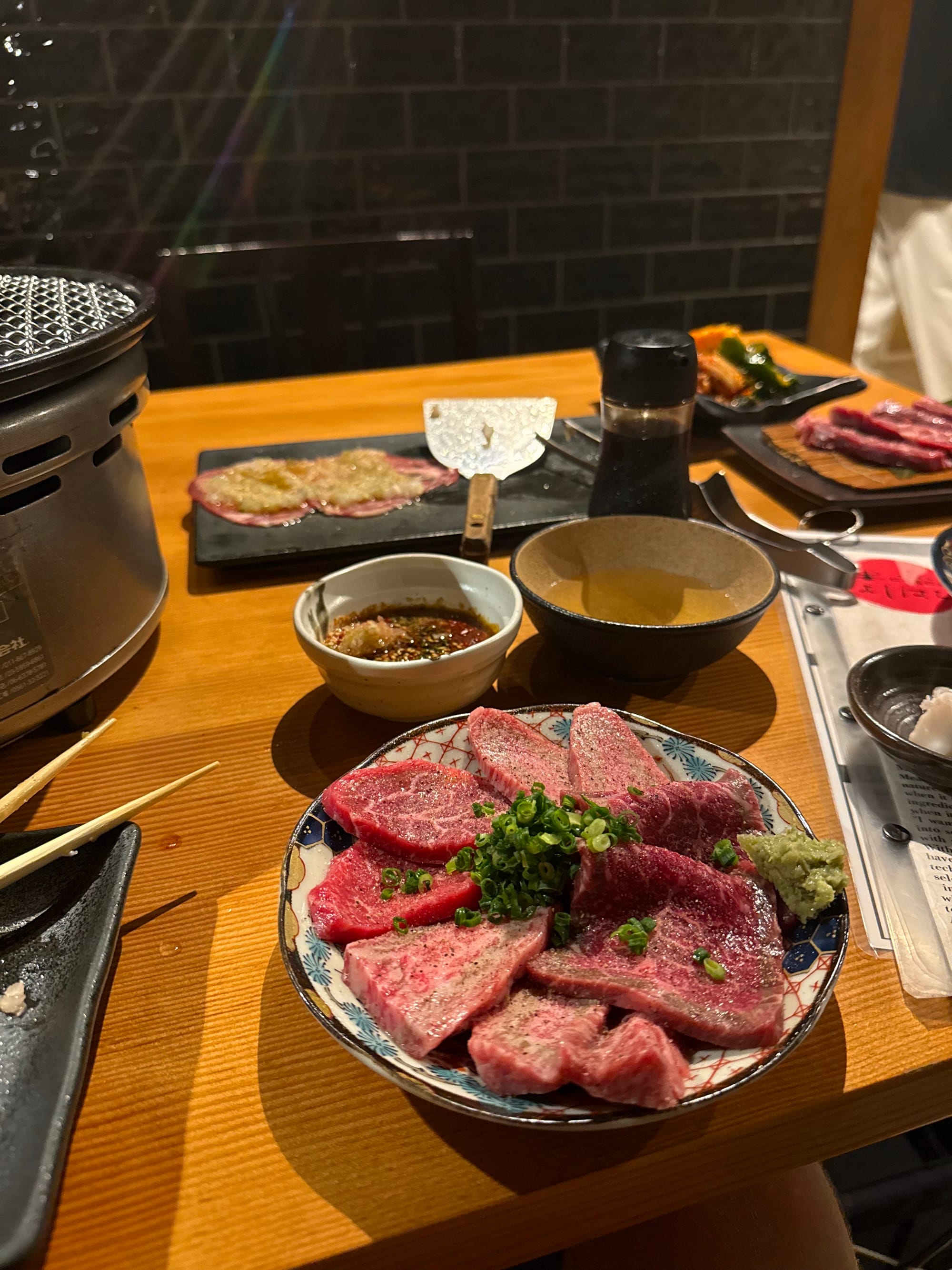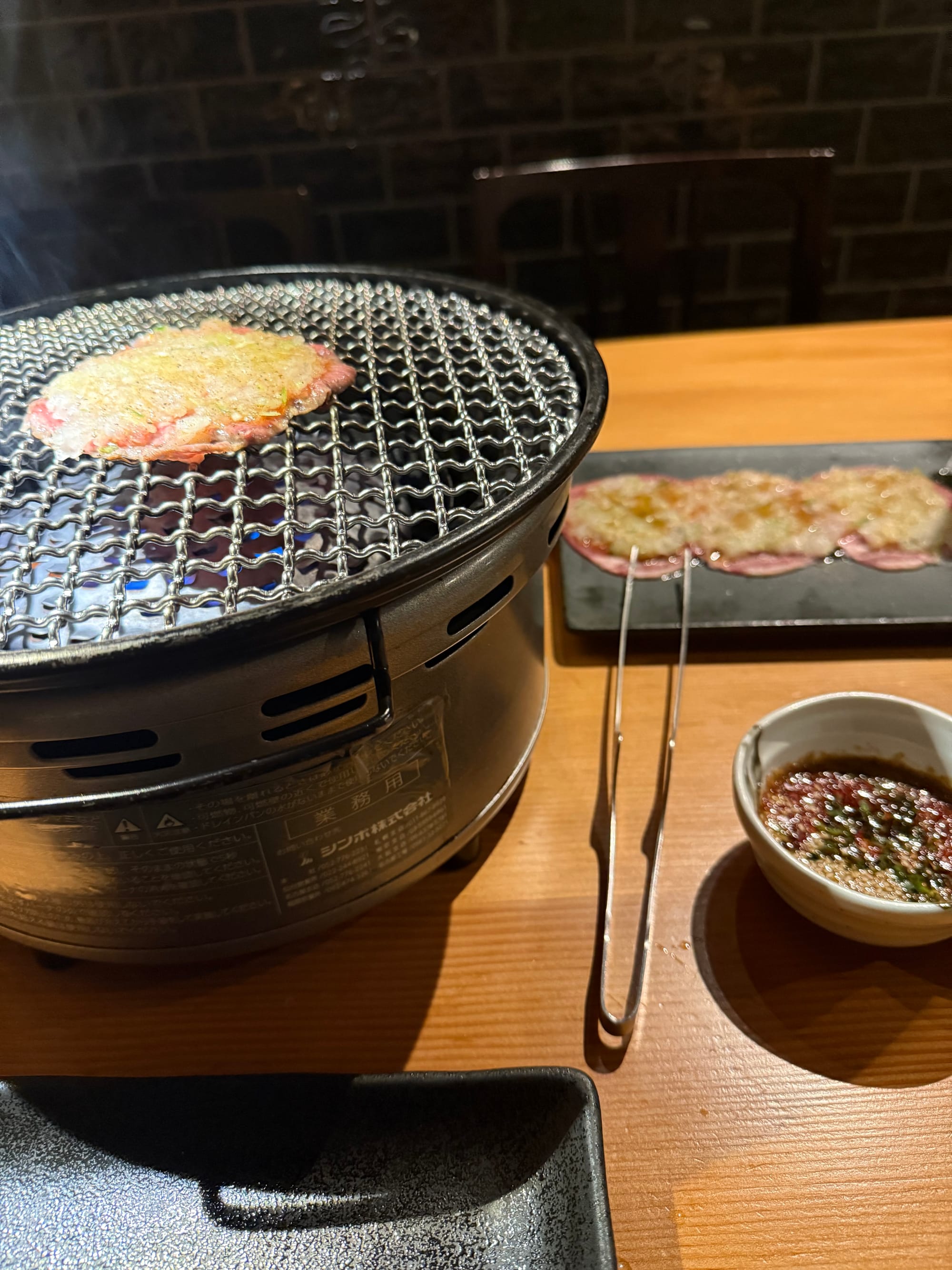 At a yakinuku restaurant, you order the raw meat and it yourself on a tabletop grill. After working through some translation issues I put my order in: